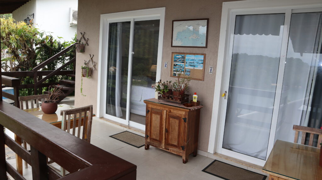 Nossas duas suítes são privativas, com entrada independente e contam com ventilador, ar condicionado, frigobar, televisão e wi-fi para você poder postar fotos de um dos locais com uma das vistas mais bonitas de Angra.